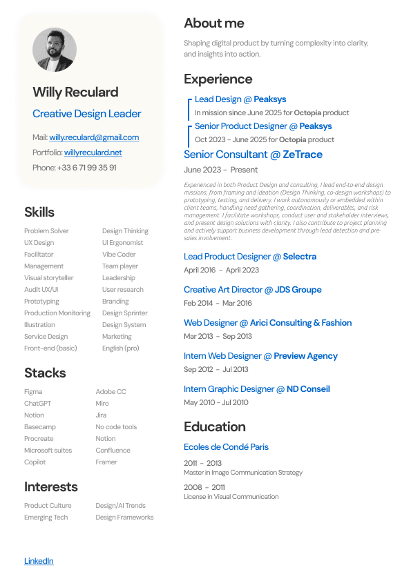 Shaping digital product by turning complexity into clarity, and insights into action. Based in Bordeaux, FR.