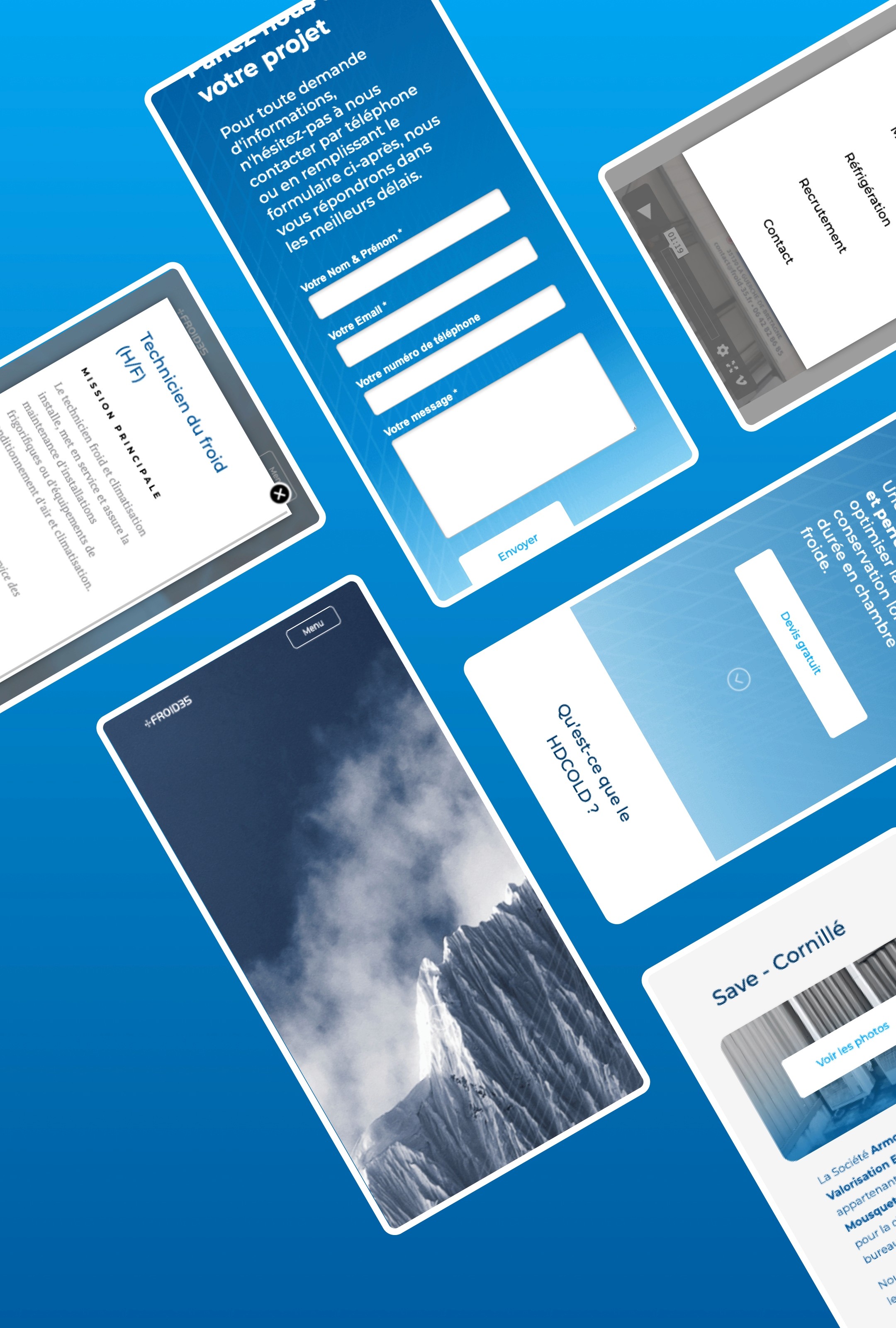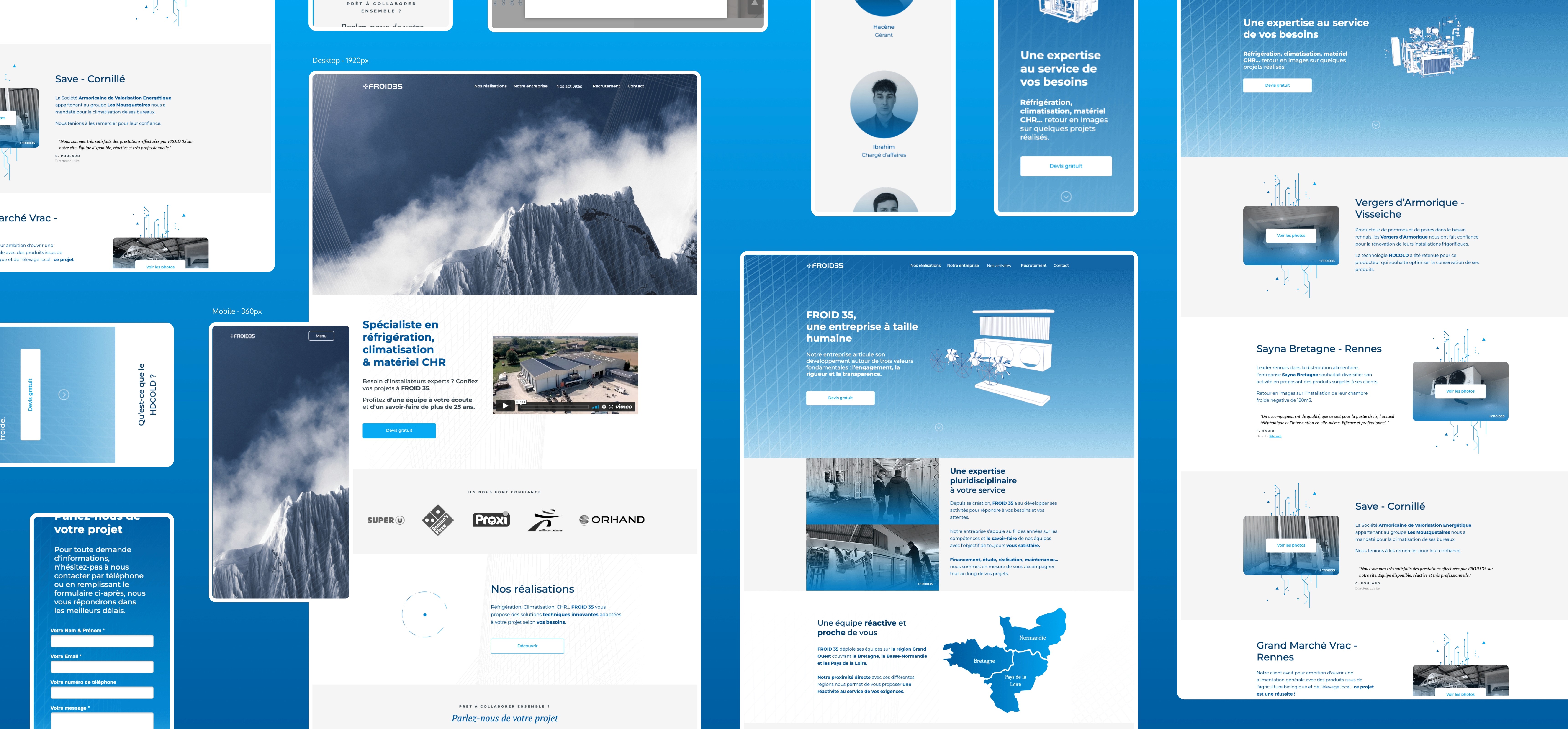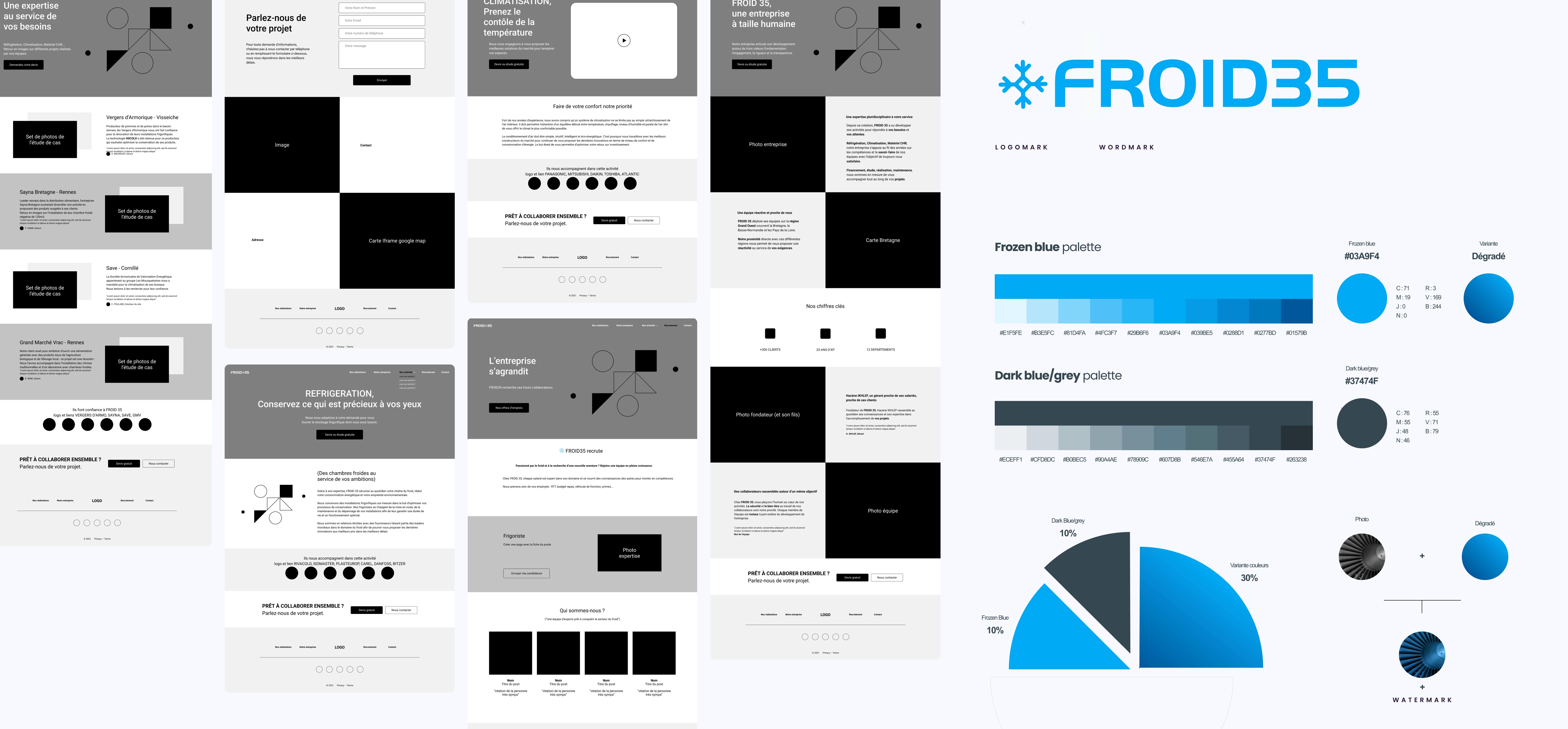 For the tone of voice, I leaned for something clear and simple. For the colors, I suggested a blue palette to emphasize the “knowledge” value and the concept of "cold". For the imagery, I asked for authenticity with real pictures from the company work.