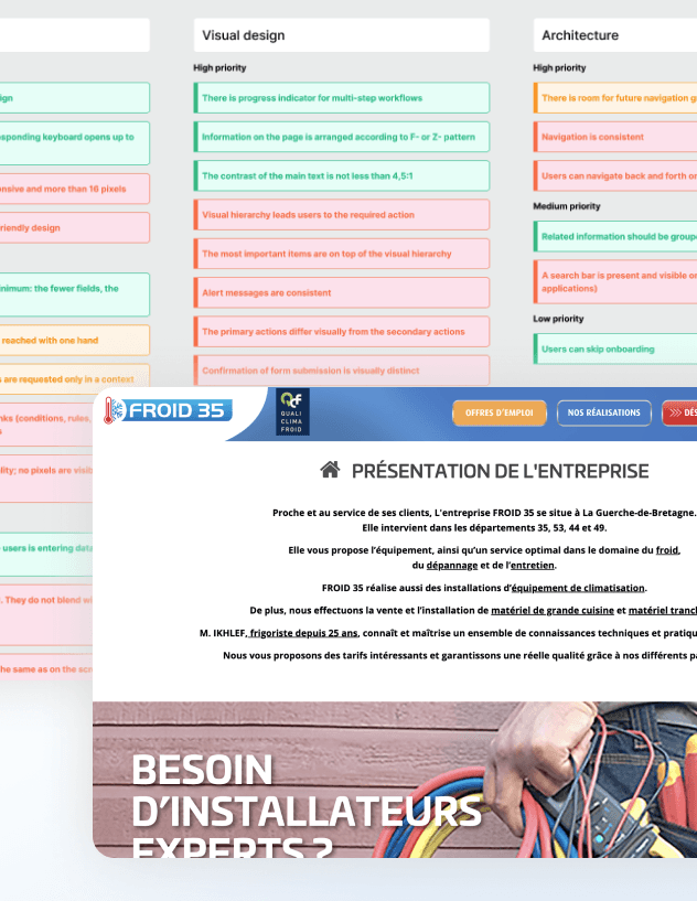 Their website was outdated: I established a UX audit report which consisted to spot issues and list potential opportunities for improvements/solutions. Combined to a user journey map, I highlighted common issues of usability, branding strategy, as well as readability and accessibility. After reached my client to expose him the report, I prioritized several actions.